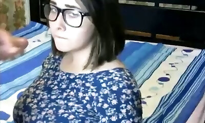 Decente adolescente en los vasos va con ganas de follar con su novio