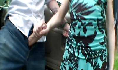 ordeñar la polla en público hace que esta mujer curvilínea se caliente y se moleste