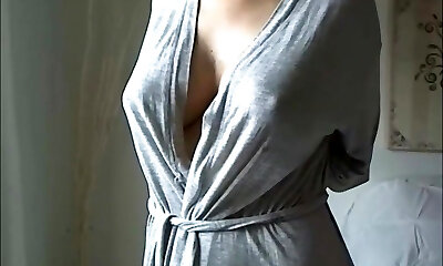 Lukerya tries on a jacket to a microskirt, shows naked boobs