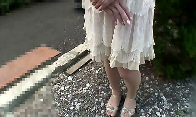 Unfamiliar milf in pantyhose masturbated and milked my man rod outdoors