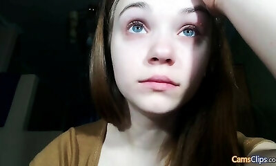 Cute blonde teen frolicking tight pussy on webcam