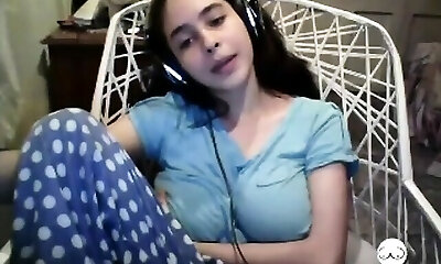 19 year older busty webcam girl with innocent face touches her big natural ti