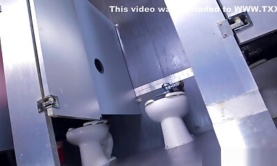 Seductive gal sucking cock at gloryhole gets slime bathroom