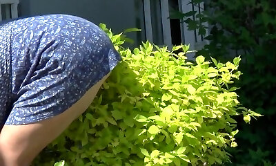 the nanny was cleaning toys at home and bent over doggy, picked up her bathrobe and fucked